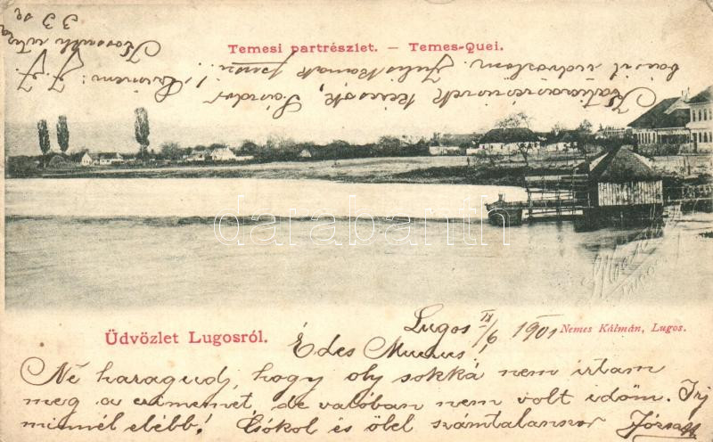 Lugos, Lugoj; Temesi part, kiadja Nemes Kálmán / river bank (Rb) https://www.darabanth.com/hu/272-Gyorsarveres/272.0/Kepeslapok/Erdely~400314/Lugos-Lugoj-Temesi-part-kiadja-Nemes-Kalman-river-bank-Rb~II1387390