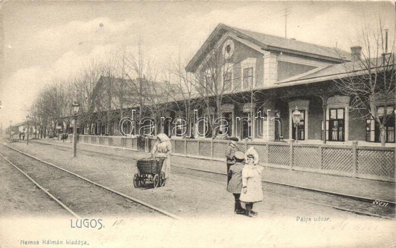 Lugos, Lugoj; Vasútállomás, kiadja Nemes Kálmán / railway station https://www.darabanth.com/hu/272-Gyorsarveres/272.0/Kepeslapok/Erdely~400314/Lugos-Lugoj-Vasutallomas-kiadja-Nemes-Kalman-railway-station~II1383715