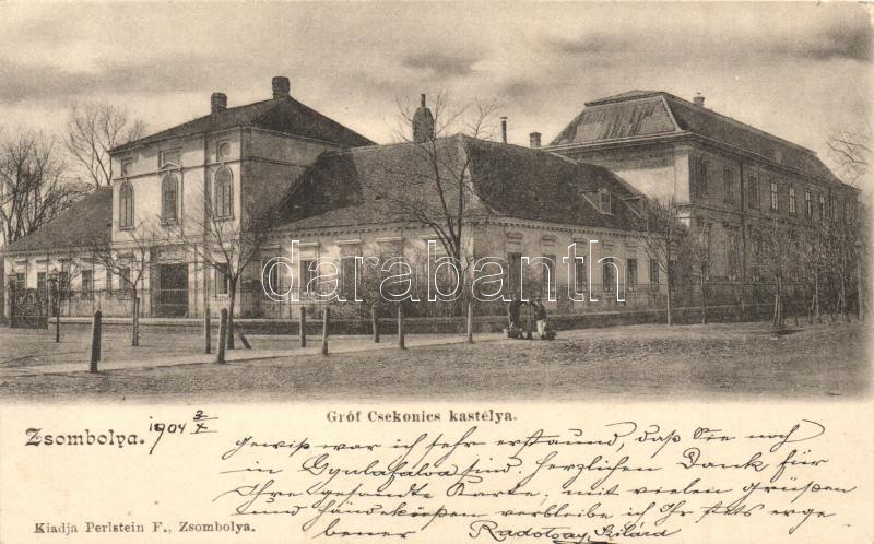 Zsombolya, Jimbolia; Gróf Csekonics kastély, kiadja Perlstein F. / cas... https://www.darabanth.com/hu/272-Gyorsarveres/272.0/Kepeslapok/Erdely~400314/Zsombolya-Jimbolia-Grof-Csekonics-kastely-kiadja-Perlstein-F-castle-EB~II1384836