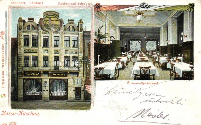 Leírás: Kassa, Kosice; Schubert Ferenc vendéglője, belső, kiadja Feitzinger Ede / restaurant, interior (EK)