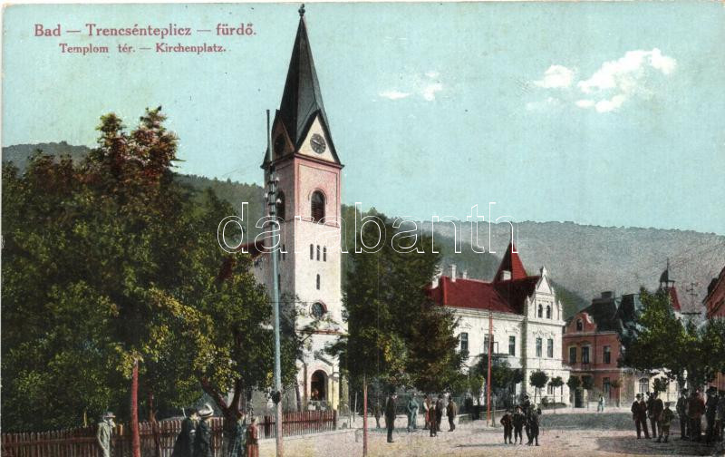 Leírás: Trencsénteplic, Trencín; Templom tér; Wertheim Zsigmond kiadása / Church Square