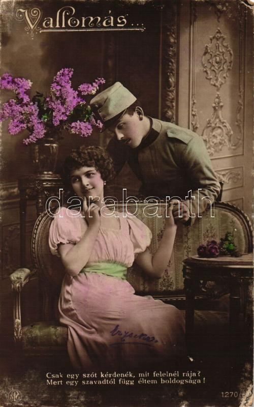 'Vallomás' / Confession, Austro-Hungarian soldier with his s... https://www.darabanth.com/hu/272-Gyorsarveres/272.0/Kepeslapok/Katonai~200066/Vallomas-Confession-Austro-Hungarian-soldier-with-his-sweetheart-WWI-EK~II1334328
