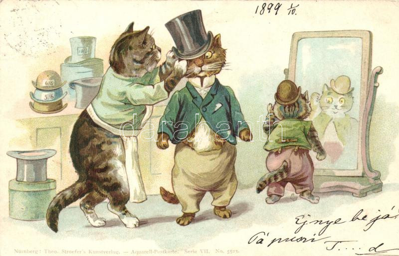 1899 Cats, Theo Stroefer's Kunstverlag litho https://www.darabanth.com/hu/272-Gyorsarveres/272.0/Kepeslapok/Macska~200078/1899-Cats-Theo-Stroefers-Kunstverlag-litho~II1388662