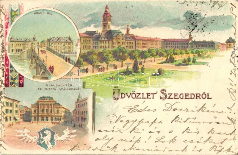 1899 Szeged, Közúti híd, Klauzál-tér az Európa szállodával, kiadja End... https://www.darabanth.com/hu/272-Gyorsarveres/272.0/Kepeslapok/Magyarorszag~200075/1899-Szeged-Kozuti-hid-Klauzal-ter-az-Europa-szallodaval-kiadja-Endrenyi-Imre-litho-EB~II1330660