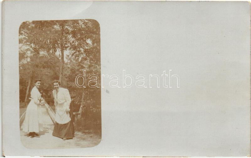 1907 Öregcsertő, hölgyek labdajáték közben, photo (fa) https://www.darabanth.com/hu/272-Gyorsarveres/272.0/Kepeslapok/Magyarorszag~200075/1907-Oregcserto-holgyek-labdajatek-kozben-photo-fa~II1381403