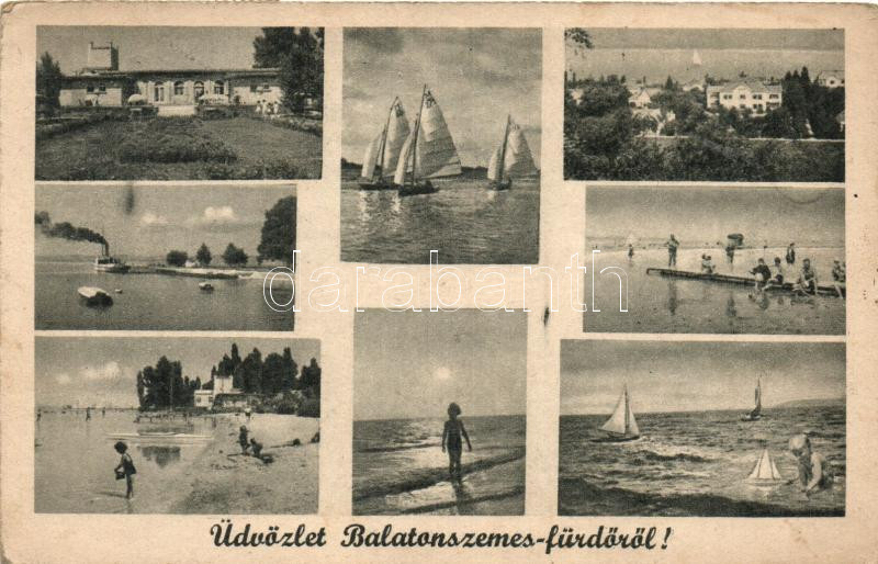 Balatonszemes-fürdő, Strand, kikötő, vitorlások (fa) https://www.darabanth.com/hu/272-Gyorsarveres/272.0/Kepeslapok/Magyarorszag~200075/Balatonszemes-furdo-Strand-kikoto-vitorlasok-fa~II1382886