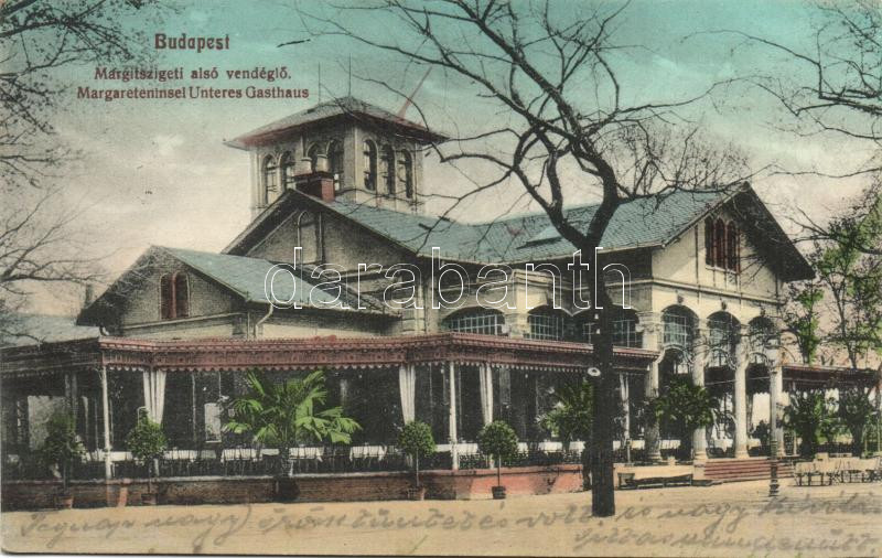 Budapest XIII. Margitsziget, alsó-vendéglő https://www.darabanth.com/hu/272-Gyorsarveres/272.0/Kepeslapok/Magyarorszag~200075/Budapest-XIII-Margitsziget-also-vendeglo~II1313820
