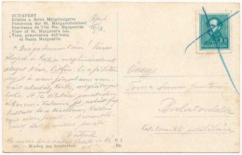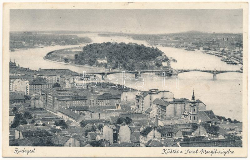 Budapest, kilátás a Margitszigetre, Margithíd https://www.darabanth.com/hu/272-Gyorsarveres/272.0/Kepeslapok/Magyarorszag~200075/Budapest-kilatas-a-Margitszigetre-Margithid~II1313951