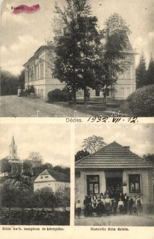 Dédes, Kastély, Horovitz Béla üzlete, katolikus templom környéke https://www.darabanth.com/hu/272-Gyorsarveres/272.0/Kepeslapok/Magyarorszag~200075/Dedes-Kastely-Horovitz-Bela-uzlete-katolikus-templom-kornyeke~II1254656