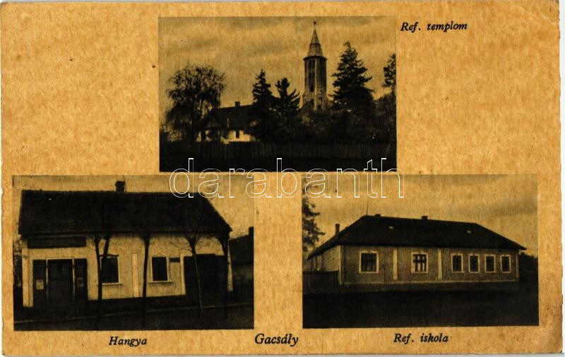Gacsály, Református templom, Hangya üzlet, Református iskola (EK) https://www.darabanth.com/hu/272-Gyorsarveres/272.0/Kepeslapok/Magyarorszag~200075/Gacsaly-Reformatus-templom-Hangya-uzlet-Reformatus-iskola-EK~II1314705