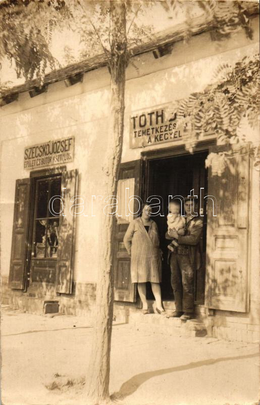 Leírás: Szegvár (?), Tóth Sándor temetkezési vállalata, Szecskó József épület és bútor asztalos üzlete. photo