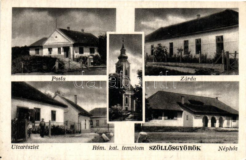 Leírás: Szőlősgyörök, Zárda, népház, posta, római katolikus templom, kiadja Nagy Ferenc (EK)