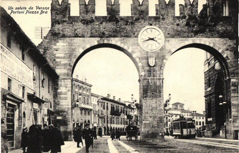 Verona, Portoni Piazza Bra / square, gate, tram https://www.darabanth.com/hu/272-Gyorsarveres/272.0/Kepeslapok/Olaszorszag~200033/Verona-Portoni-Piazza-Bra-square-gate-tram~II1255807