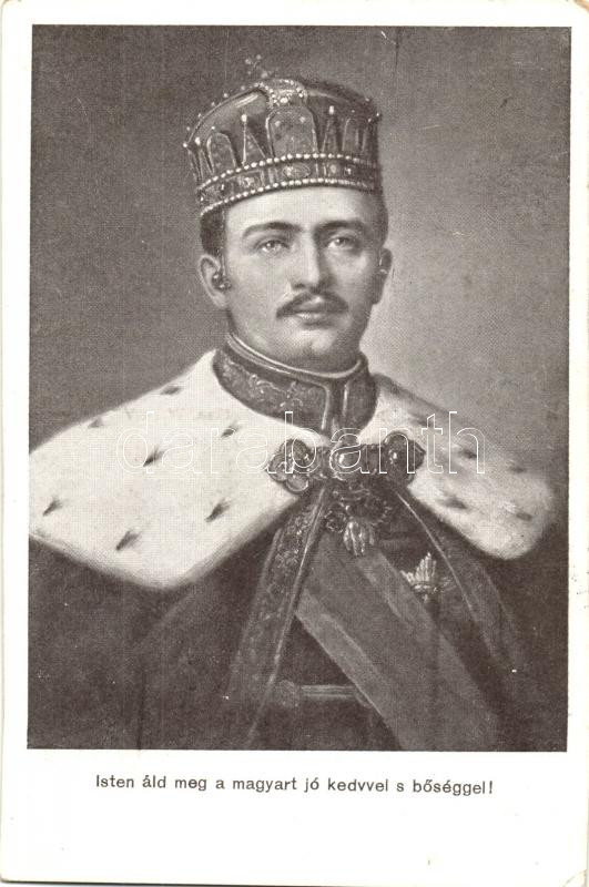 Isten áld meg a magyart jó kedvvel s bőséggel! IV. Károly / Charles IV... https://www.darabanth.com/hu/272-Gyorsarveres/272.0/Kepeslapok/Uralkodo-Politikus~200099/Isten-ald-meg-a-magyart-jo-kedvvel-s-boseggel-IV-Karoly-Charles-IV--1916-IV-Karoly-kirC3~II1387755