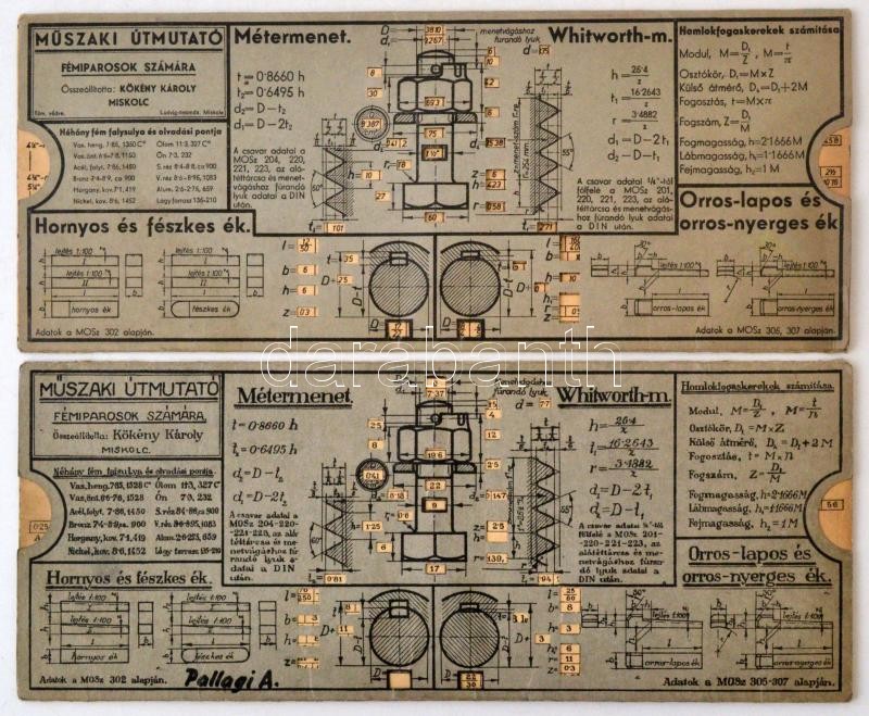 Leírás: 2 db. Műszaki Útmutató Fémiparosok számára. Összeállította: Kökény Károly, Miskolc. Papír tokban. A papír tok szakadt.