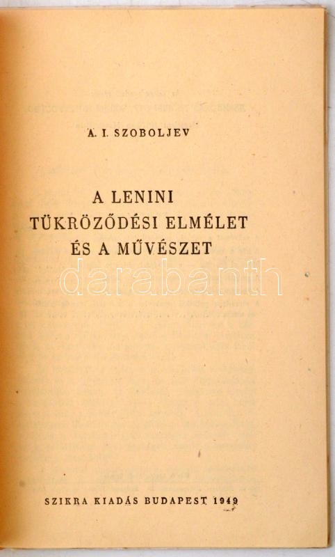 A.I. Szoboljev: A lenini tükröződési elmélet és a művészet. Marxista I... https://www.darabanth.com/hu/272-Gyorsarveres/272.0/Konyvek/Konyvek-Egyeb-ritkasagok~45/AI-Szoboljev-A-lenini-tukrozodesi-elmelet-es-a-muveszet-Marxista-Ismeretek-Kis-Konyvta~II1388324