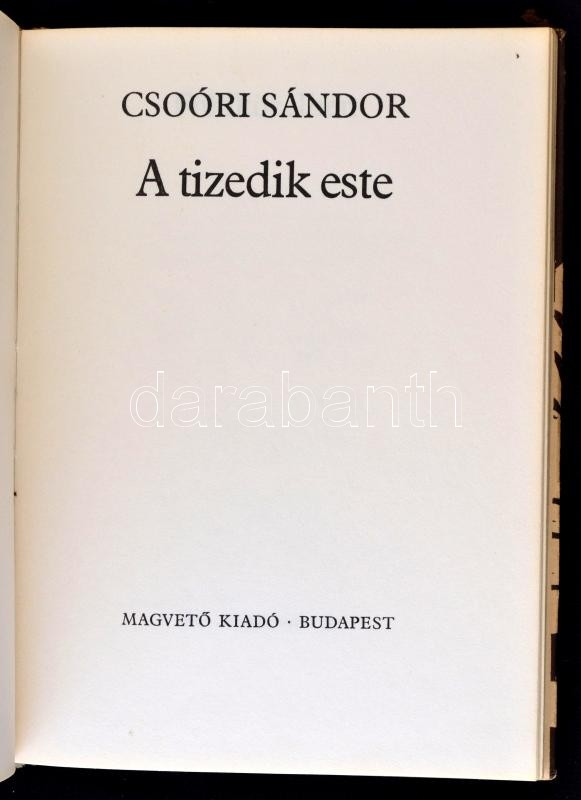 Csoóri Sándor: A tizedik este. Budapest, 1980, Magvetői Könyvkiadó. Ki... https://www.darabanth.com/hu/272-Gyorsarveres/272.0/Konyvek/Konyvek-Egyeb-ritkasagok~45/Csoori-Sandor-A-tizedik-este-Budapest-1980-Magvetoi-Konyvkiado-Kiadoi-papirkotes-kiad~II1362896