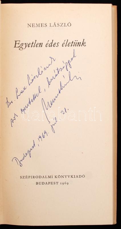 Leírás: Nemes László: Szeretni nem elég. Bp., 1969, Szépirodalmi. dr. Lax László főorvosnak szóló dedikációval.