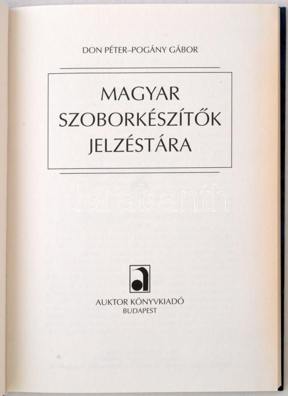 Don Péter - Pogány Gábor: Magyar szoborkészítők jelzéstára. Budapest, ... https://www.darabanth.com/hu/272-Gyorsarveres/272.0/Konyvek/Konyvek-Epiteszet-muveszet~37/Don-Peter--Pogany-Gabor-Magyar-szoborkeszitok-jelzestara-Budapest-2003-Auktor-Konyvkia~II1388150