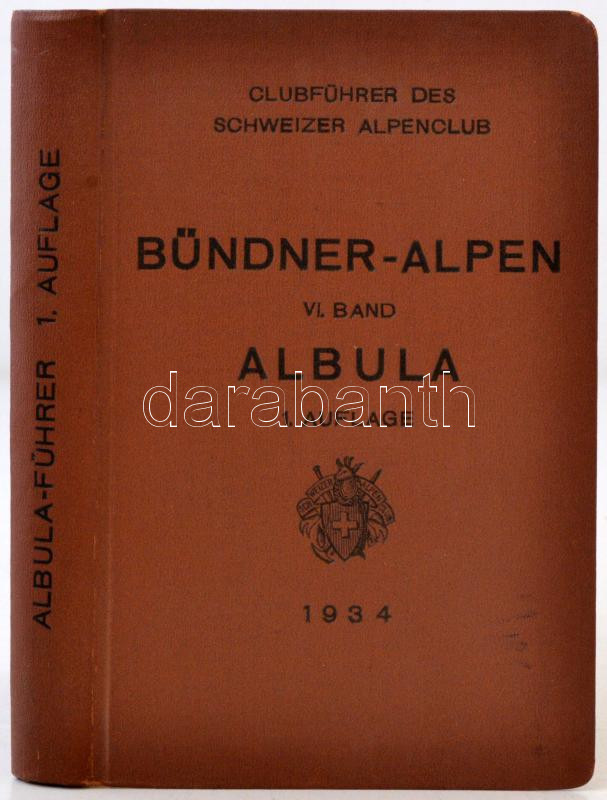 Clubführer durch die Bündner Alpen. 6. köt.: Albula (Spetimer bis Flüela). Összeáll.: Wenzel, Eugen. Zürich, 1934, schweizer Alpenclub. Átnézeti térképekkel. Vászonkötésben, jó állapotban.
