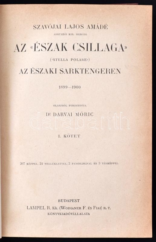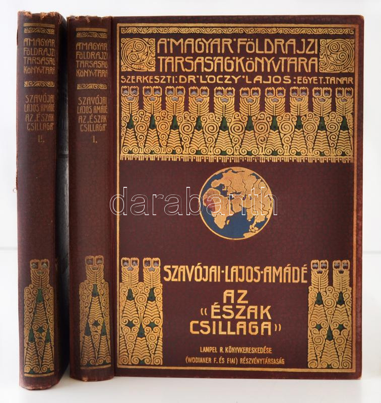 Szavójai Lajos Amádé: Az "Észak csillaga", Az Északi sarkitengeren 1899-1900. I-II. Olaszból fordította Dr. Darvai Móric. Bp., Lampel. Kiadói aranyozott egészvászon sorozatkötésben, kissé koppottas állapotban. A gerinc felső részén apró sérülés.