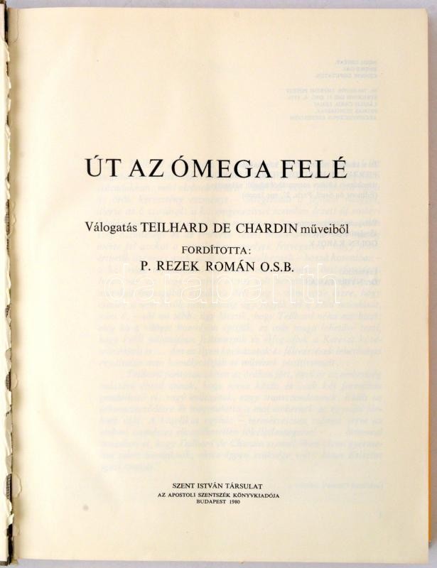 Teilhard de Chardin: Út az Ómega felé. Válogatás - - műveiből. Budapes... https://www.darabanth.com/hu/272-Gyorsarveres/272.0/Konyvek/Konyvek-Vallas~42/Teilhard-de-Chardin-Ut-az-Omega-fele-Valogatas---muveibol-Budapest-1980-Szent-Istvan-~II1387989