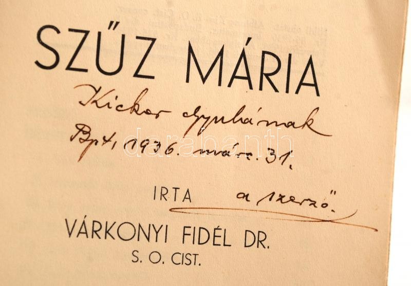 Várkonyi Fidél: Szűz Mária. Budapest, 1936. Kiadói papírkötés, 88 p. A... https://www.darabanth.com/hu/272-Gyorsarveres/272.0/Konyvek/Konyvek-Vallas~42/Varkonyi-Fidel-Szuz-Maria-Budapest-1936-Kiadoi-papirkotes-88-p-A-szerzo-altal-dedikC3~II1367011