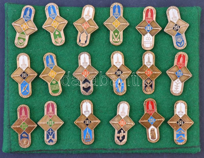 Szovjetunió 1980. 18db klf "Moszkvai Olimpia" sportágakat ábrázoló fém jelvény T:1-,2