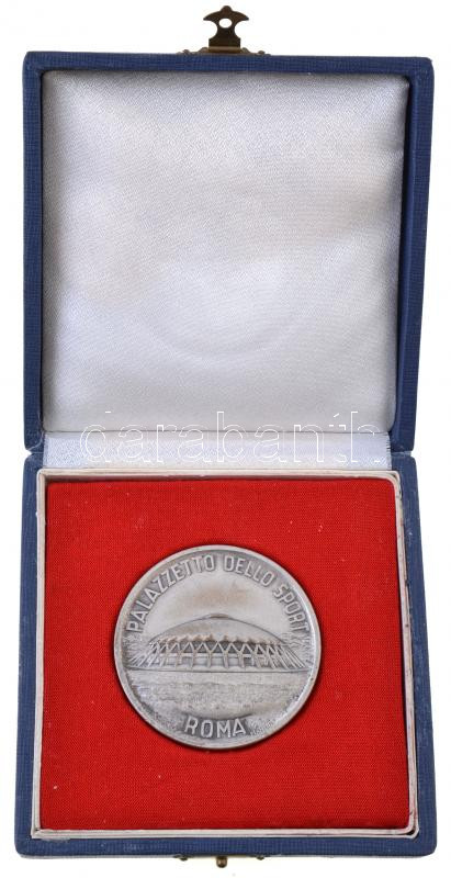 Olaszország 1957. "Palazzetto dello Sport - Roma / C.O.N.I. XXX. IX. MCMLVII." ezüstözött Br emlékérem dísztokban. Szign.: Manetti (55mm) T:2