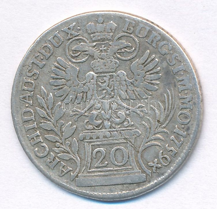 Aus... https://www.darabanth.com/hu/272-Gyorsarveres/272.0/Numizmatika/Kulfoldi-fem-es-ezustpenzek~300013/Ausztria-1759-20kr-Ag-Maria-Terezia-6-30g-T2-k---Austria-1759-20-Kreuzer-Ag-Maria-Theres~II1381992