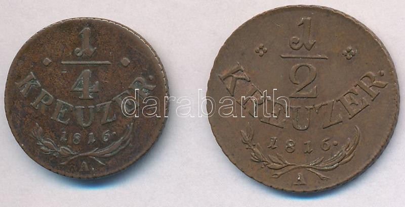 Austria 1816A 1/4 Kreuzer Cu + 1/2 Kreuzer Cu C:XF,VF