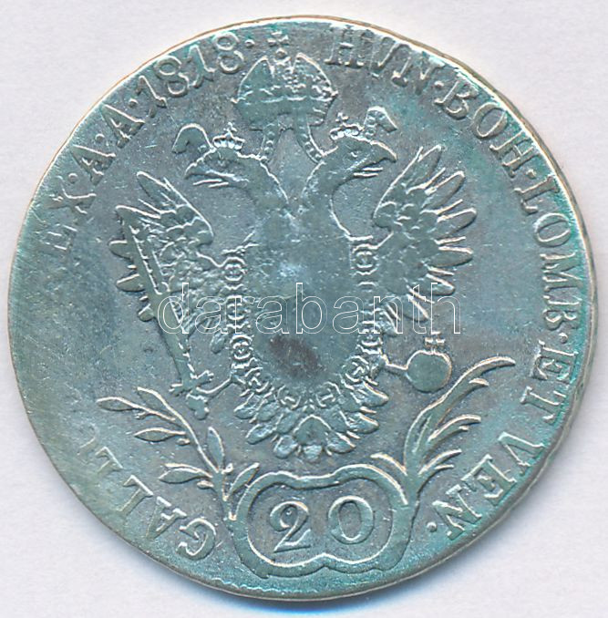Austria 1818V 20 Kre... https://www.darabanth.com/hu/272-Gyorsarveres/272.0/Numizmatika/Kulfoldi-fem-es-ezustpenzek~300013/Ausztria-1818V-20kr-Ag-I-Ferenc-T3--Austria-1818V-20-Kreuzer-Ag-Franz-II-CF--Krause-KM232143~II1385823