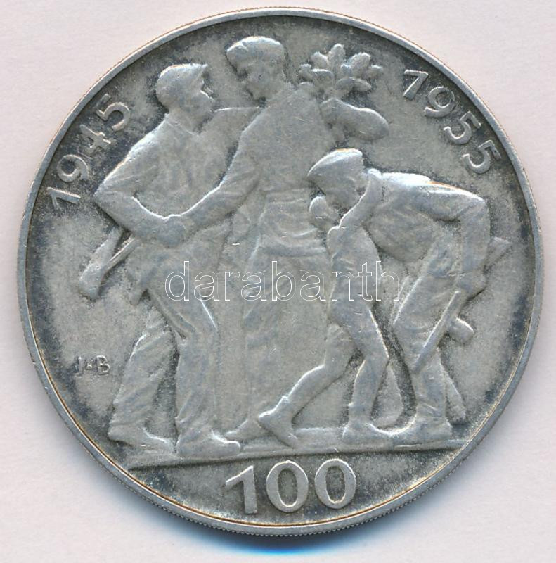 Czechoslovakia 1955. 100 Korun Ag "10th Anniversary - Liberation from Germany" C:XF small edge error