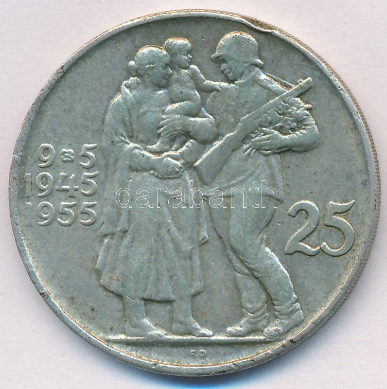 Czechoslovakia 1955. 25 Korun Ag "10th Anniversary - Liberation from Germany" C:XF,VF edge error