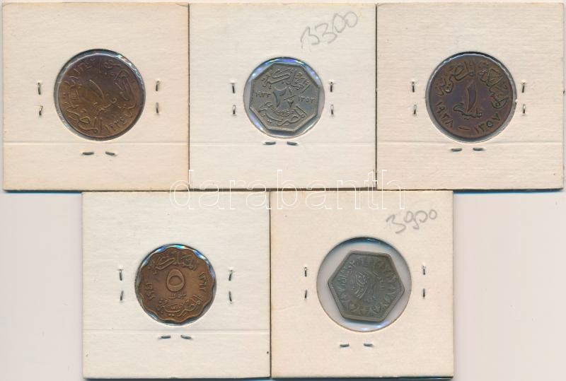 Leírás: Egyiptom 1924. 1m Br + 1933. 2 1/2m Cu-Ni "I. Fuád" + 1938. 1m Br + 1943. 5m Br + 1944. 2P Ag "Fárúk" T:2,2-