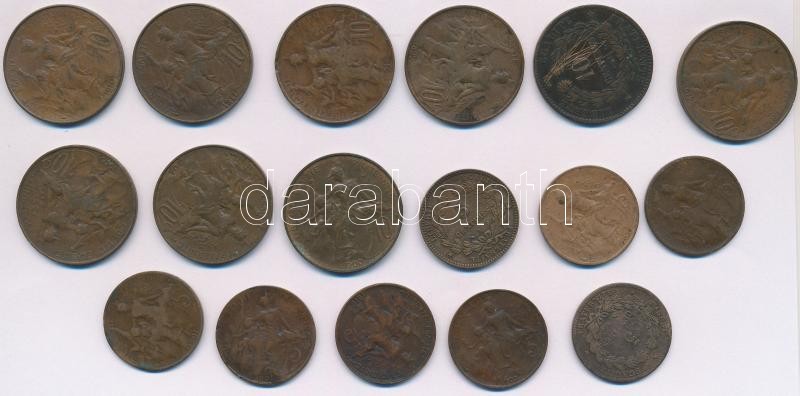Leírás: Franciaország 1874K 10c Br + 1890A-1897A 5c Br (2x) + 1898. 5c Br (6x) + 1899. 10c Br (8x) T:vegyes