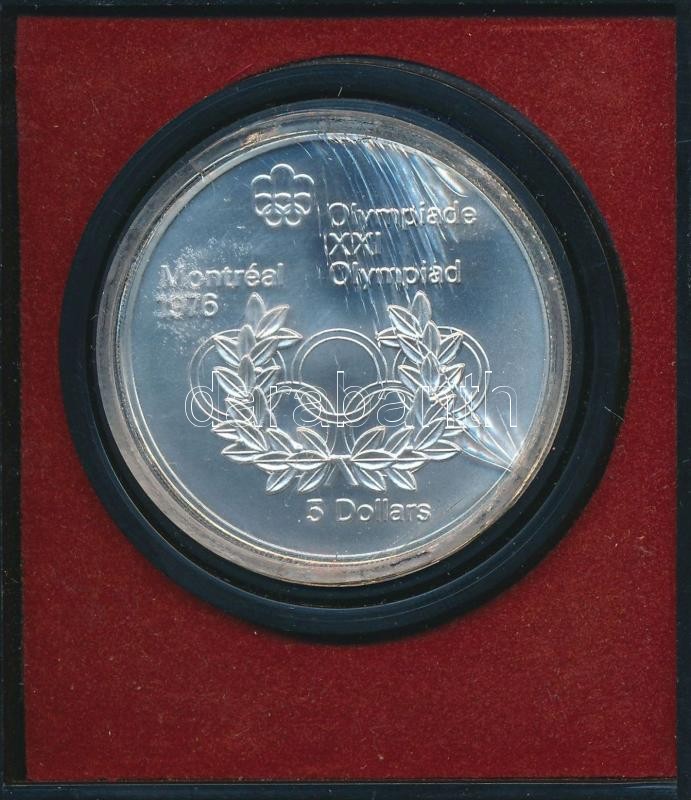 Kanada 1976. 5$ Ag "Montreali olimpia" kissé sérült dísztokban tanúsítvánnyal T:1