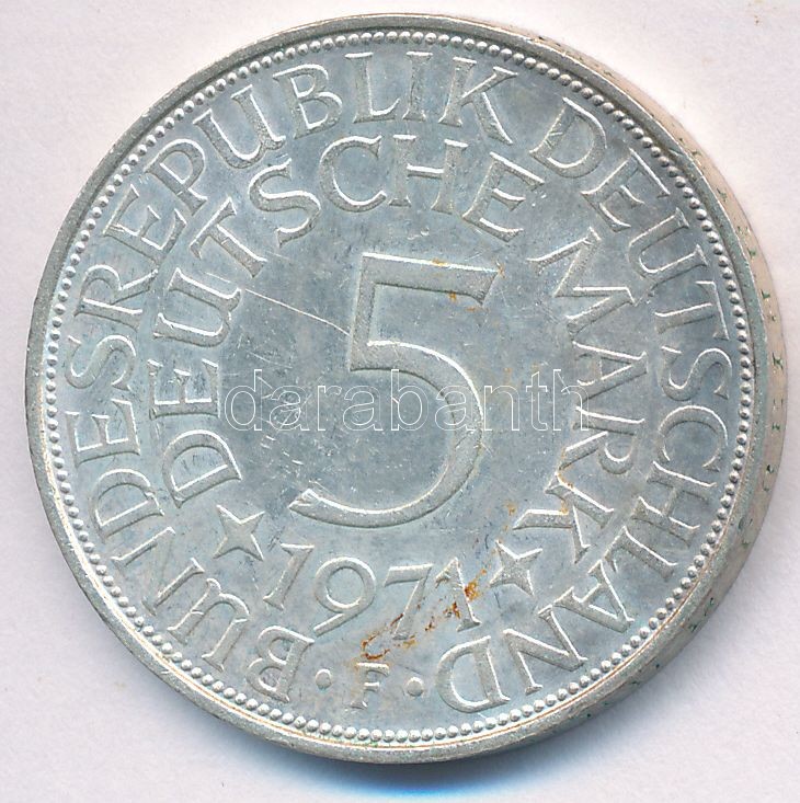 FRG 1971F 5 Mark Ag C:XF https://www.darabanth.com/hu/272-Gyorsarveres/272.0/Numizmatika/Kulfoldi-fem-es-ezustpenzek~300013/NSZK-1971F-5M-Ag-T2--FRG-1971F-5-Mark-Ag-CXF~II1387405