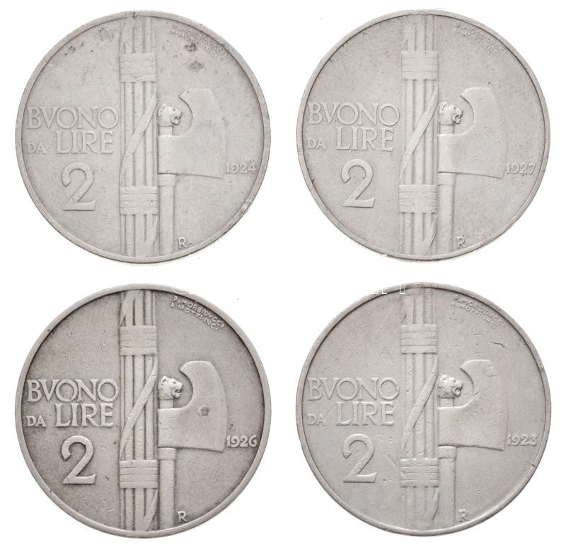 Olaszország 1923R 2L Ni + 1924R 2L Ni + 1926R 2L Ni + 1927R 2L Ni "III. Viktor Emánuel" T:2-,3 ü.