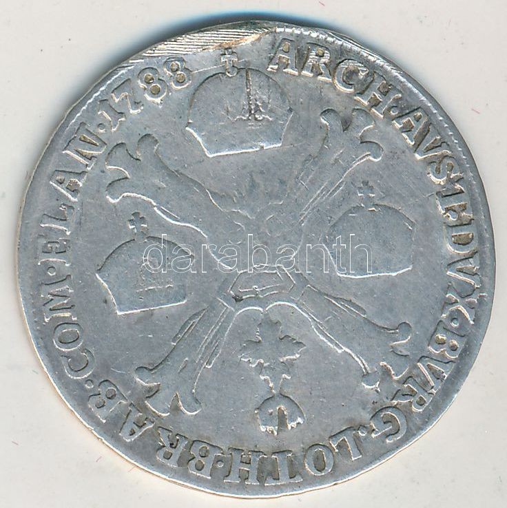 Osztrák Németalföld 1788H 1/4 Koronatallér Ag "II. József" v... https://www.darabanth.com/hu/272-Gyorsarveres/272.0/Numizmatika/Kulfoldi-fem-es-ezustpenzek~300013/Osztrak-Nemetalfold-1788H-14-Koronataller-Ag-II-Jozsef-vesett-7-04g-T3-ph-fulnyom-el~II1366442