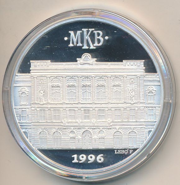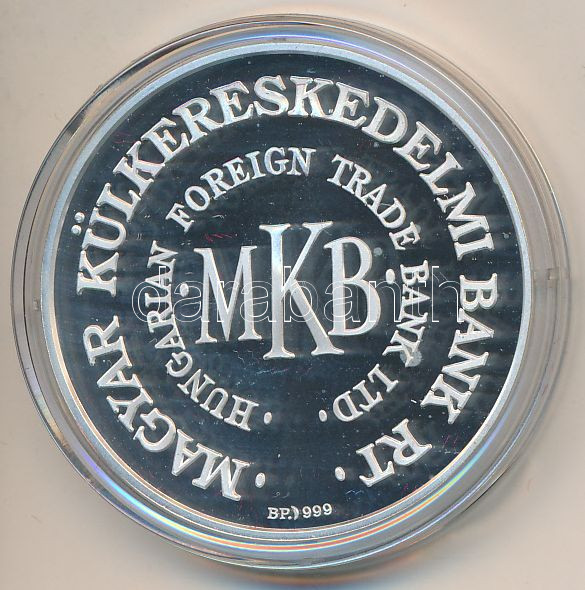 Leírás: Lebó Ferenc (1960-) 1996. "MKB (Magyar Külkereskedelmi Bank) Rt." Ag emlékérem eredeti dísztokban tájékoztatóval (31,14g/0.999/42,5mm) T:PP