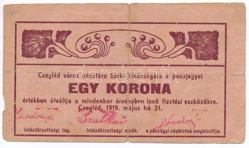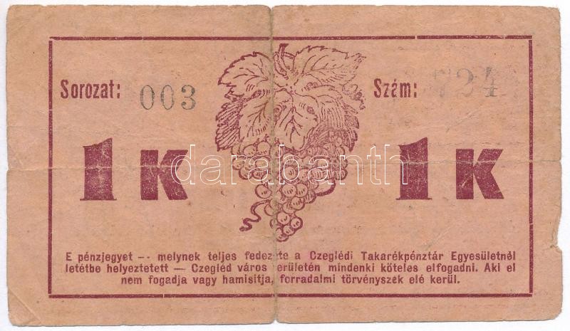 Leírás: Cegléd 1919. 1K "Czegléd Városi Pénztár" T:III-