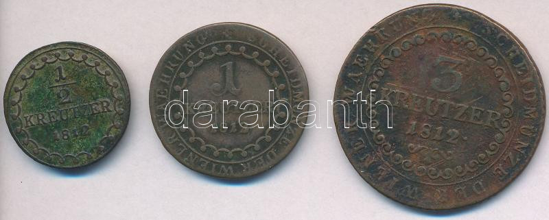 1812S 1/2kr Cu + 1kr Cu + 3kr Cu T:2-,3 patina https://www.darabanth.com/hu/272-Gyorsarveres/272.0/Numizmatika/Magyar-es-magyar-verdejelu-fem-es-ezustpenzek~300008/1812S-12kr-Cu-plus-1kr-Cu-plus-3kr-Cu-T2-3-patina~II1384963
