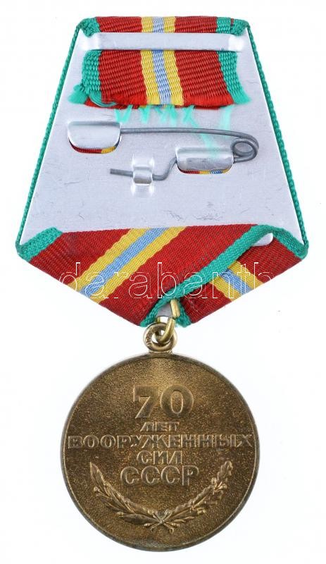 Szovjetunió 1988. "70 éves a Szovjetunió Fegyveres Ereje" sárgaréz érdemérem szalagon (32mm) T:2