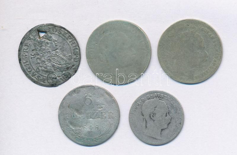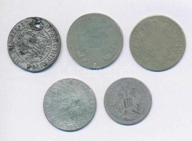 Vegyes: 6db-os vegyes rossz minőségű magyar és külföldi ezüstpénz tétel, közte Ausztria 1848A 6kr Ag; 1868. 10kr Ag "Ferenc József" T:3,3-,5