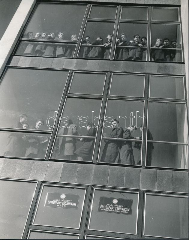 cca 1960 Győr, Az első tanév a Hild József Építőipari Technikumban, amely az ország legkorszerűbb építőipari középiskolája volt, vintage fotó, 22,5x18 cm