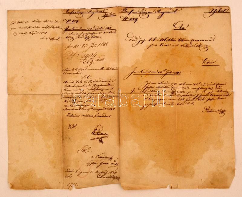 1848 július 23. Parancs a Tiroli katonai főparancsnokságtól Pastrovich, Schönherz és Eckardt aláíásokkal / 1848 Order of the Tirol military commando with signatures