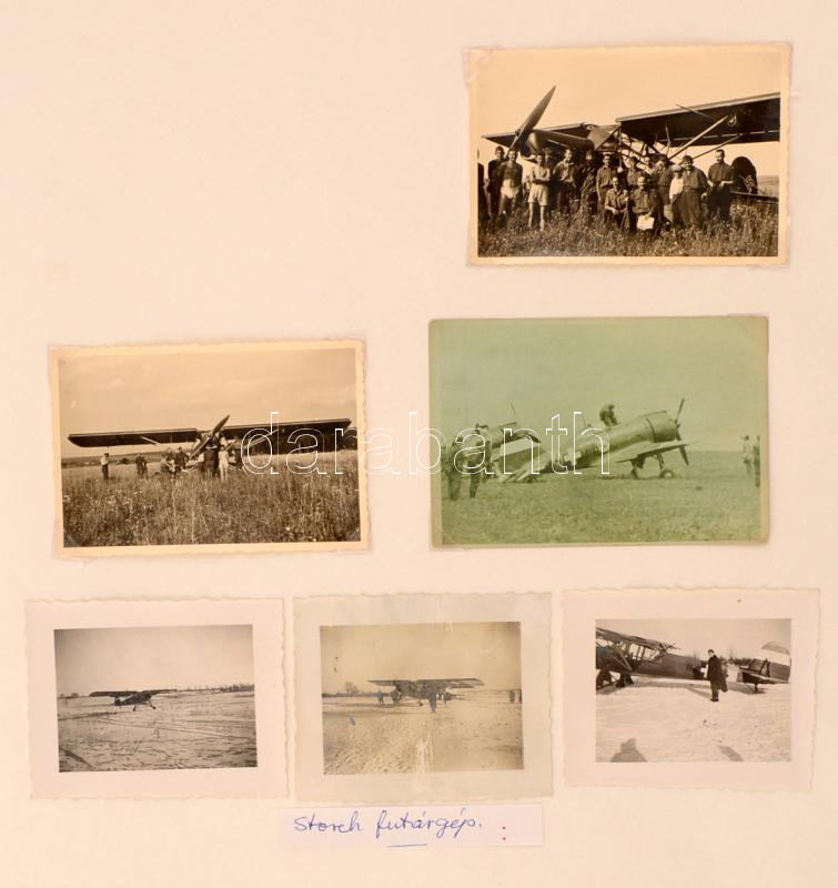 Leírás: Magyar Repülősök a keleti fronton. Vöröskeresztes és futárgépek, magyar pilóták. 6 db fotó. / Hungarian military pilots on the Eastern Front.