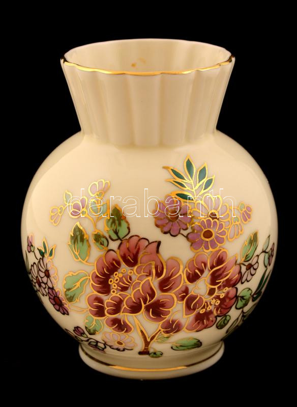 Leírás: Zsolnay virág mintás kis váza, kézzel festett, jelzett, hibátlan, m:12 cm