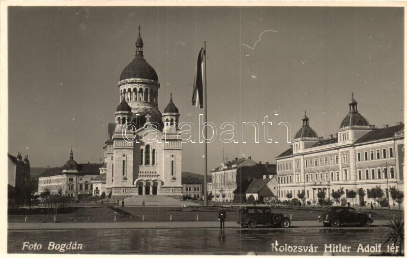 Kolozsvár, Cluj; Hitler Adolf tér, országzászló, Foto Bogdán / square,... https://www.darabanth.com/hu/273-Gyorsarveres/273.0/Kepeslapok/Erdely~200005/Kolozsvar-Cluj-Hitler-Adolf-ter-orszagzaszlo-Foto-Bogdan-square-national-flag~II1392946